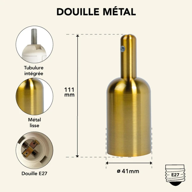 La finition bronze, esprit cuivre antique, apporte un aspect chaleureux et discret, adapté aux suspensions nues et aux montages décoratifs. Le corps en métal est pensé pour résister aux manipulations répétées et offrir une bonne tenue dans le temps. Le filetage permet un assemblage propre avec les éléments compatibles, sans sensation de jeu. Pour les interventions rapides, cette douille métal E27 limite les reprises et aide à garder un résultat net, même après plusieurs démontages.