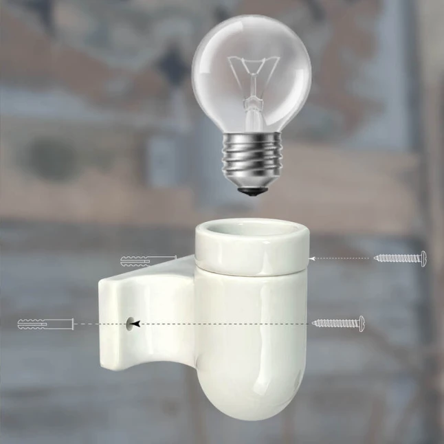Cette douille murale blanche en céramique est pensée pour équiper un mur avec une ampoule à culot E27, sans complication. Le kit comprend une douille E27 et un cache douille avec patère, pratique pour une modification, une réparation ou la création d’un point lumineux. Il répond à un problème fréquent : une sortie de câble visible ou un montage qui manque de finition. Le rendu reste propre et discret, adapté à de nombreux styles.
