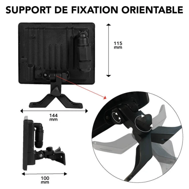 Le connecteur rapide intégré limite les manipulations et facilite le raccordement, un vrai gain de temps quand on remplace un ancien projecteur ou qu’on ajoute un point lumineux. La fixation orientable 3D permet d’ajuster précisément le faisceau pour éviter d’éclairer inutilement une fenêtre ou la voie publique, et concentrer la lumière là où elle est utile. Ce réglage fin convient aussi bien aux besoins ponctuels qu’aux chantiers répétitifs.