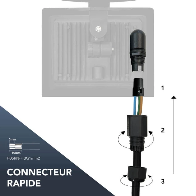 Autre point sensible : obtenir le bon angle de lumière sans perdre de temps. Le support de fixation orientable et le diffuseur orientable permettent de diriger le faisceau vers la zone à sécuriser ou à mettre en valeur. Le connecteur rapide intégré facilite le raccordement et fait gagner du temps, apprécié pour des chantiers comme pour des remplacements. La garantie 5 ans ajoute une réassurance concrète sur la durée.
