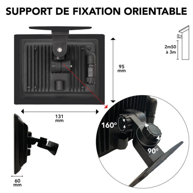 Dirigez la lumière de votre projecteur selon vos besoins grâce à son support de fixation orientable