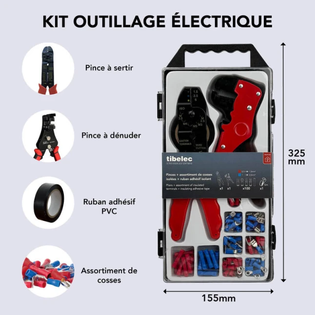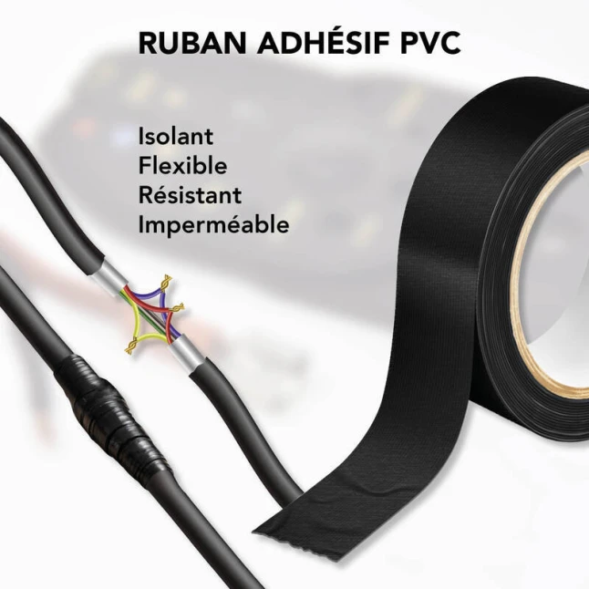 Pour finaliser vos raccordements, un ruban adhésif isolant noir de 5 m est inclus. Il permet de protéger et regrouper proprement les fils, ou de sécuriser une zone de câble après intervention. Les poignées en plastique noir offrent une prise en main simple pour un usage ponctuel comme régulier. Ce kit est adapté aux travaux de câblage du quotidien, avec des outils polyvalents qui évitent d’acheter séparément une pince à sertir, une pince à dénuder et des cosses adaptées aux sections courantes.