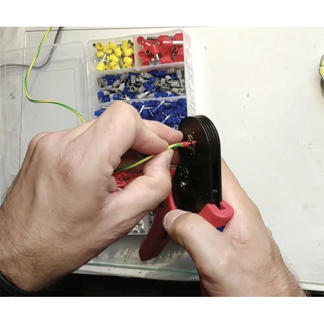 Compatible avec les embouts de câble de 0,25 à 10 mm², elle couvre les sections courantes utilisées en tableau, appareillage et liaisons d’équipements. Son mécanisme auto-ajustable s’adapte automatiquement au diamètre de sertissage selon l’embout choisi, sans avoir à chercher une empreinte différente. Cela répond au doute le plus fréquent sur la compatibilité des sections et évite les sertissages trop lâches ou trop écrasés qui fragilisent le conducteur.