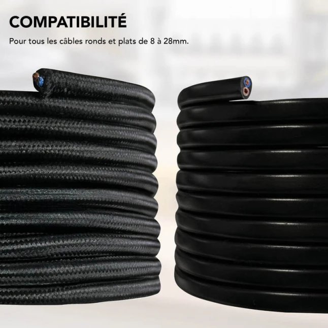 Un doute fréquent lors du dénudage de câble est d’abîmer l’isolant interne ou d’entailler les conducteurs. La vis de réglage permet d’ajuster la profondeur de coupe selon l’épaisseur de la gaine, pour un résultat plus propre et plus constant. Cela réduit les reprises et les pertes de temps, tout en améliorant la qualité des préparations de câbles. Le réglage s’adapte naturellement aux câbles plats et ronds dans la plage 8–28 mm.