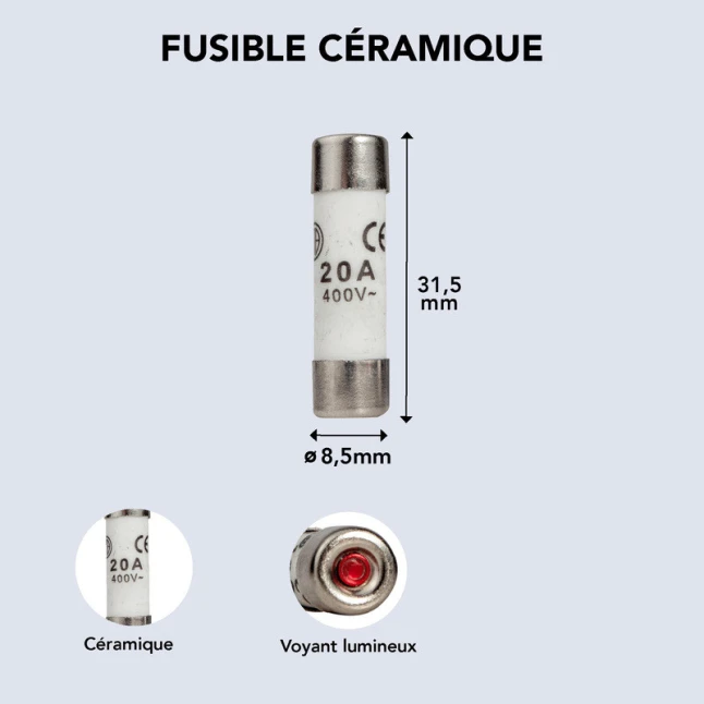 Le format 8,5 x 31,5 mm correspond à une cartouche fusible céramique standard : il est essentiel de vérifier cette dimension pour assurer la compatibilité avec votre porte-fusible. Ce lot de 3 fusibles permet de remplacer plusieurs cartouches ou de garder du stock pour une maintenance rapide. L’association 20A 400V aide à choisir le bon modèle selon le circuit, sans confusion avec d’autres calibres proches.