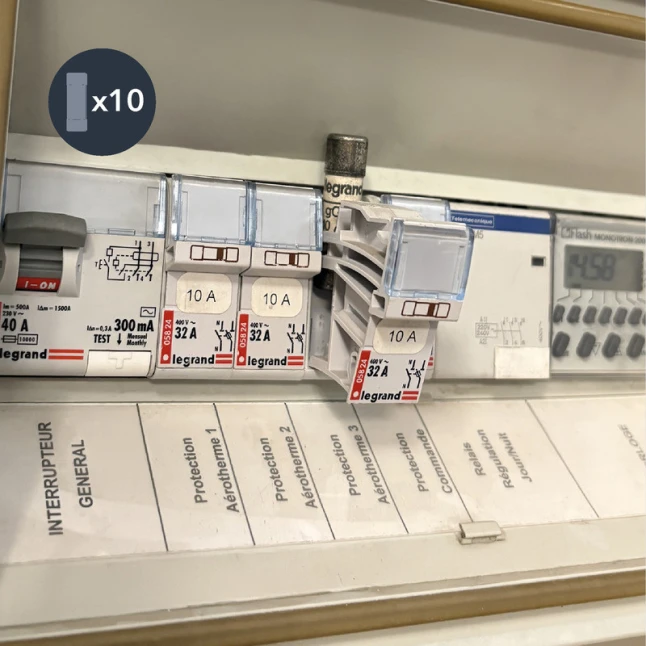 Le pack réunit 10 fusibles de calibres courants pour couvrir plusieurs besoins sans multiplier les achats. Vous disposez de 3 fusibles 10A en 8,5x23 mm, 3 fusibles 16A en 10,3x25,8 mm, 3 fusibles 20A en 8,5x31,5 mm et 1 fusible 32A en 10,3x38 mm. Ce choix de 10 ampères à 32 ampères facilite le remplacement sur différents porte-fusibles et appareils.