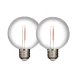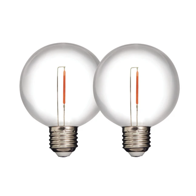 Ce lot de 2 ampoules LED décoratives globe apporte une lumière d’ambiance chaleureuse grâce à sa teinte blanc chaud 3000K. Avec 55 lumens pour 0,6 W, l’éclairage reste volontairement doux, idéal pour créer une atmosphère accueillante sans éblouir. Le style filament dans une enveloppe incolore donne un rendu rétro très apprécié sur une guirlande guinguette ou un luminaire déco.
