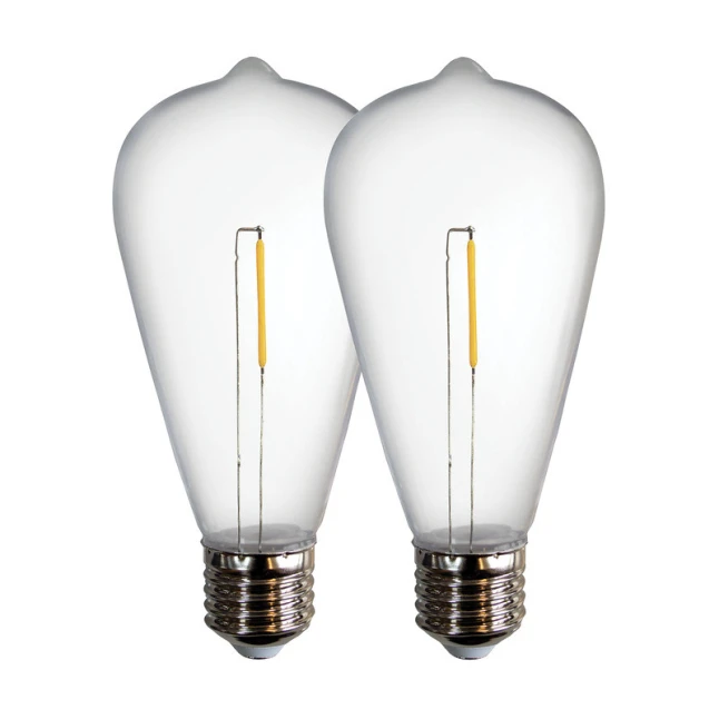 Le culot E27 est un format courant, pratique pour remplacer une ampoule de guirlande à douille E27 ou compléter une installation existante. Le corps mesure 64 x 140 mm : ces dimensions aident à vérifier rapidement l’encombrement dans un abat-jour, une suspension ou une guirlande. La finition incolore laisse bien passer la lumière et met en valeur l’effet filament, sans teinte parasite.