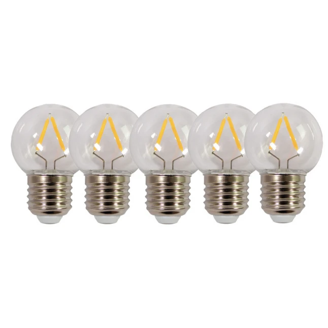Chaque ampoule LED 1,7W se visse sur une douille E27, un culot très courant sur les guirlandes lumineuses et les supports à vis. Ce format limite les doutes de compatibilité au moment du remplacement. Vous obtenez une consommation réduite tout en conservant une présence lumineuse utile. Le design sphérique en plastique reprend l’esthétique rétro des ampoules à filament, avec une technologie LED plus économe.