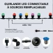 Le principal souci avec une guirlande extérieure est la tenue sous la pluie et la poussière. Ici, l’indice IP65 aide à garder un éclairage fiable en usage dehors, même en conditions humides. Autre point pratique : le modèle est connectable, ce qui permet de raccorder jusqu’à 10 guirlandes pour couvrir une grande longueur sans multiplier les prises. La faible puissance totale limite la consommation tout en gardant une ambiance lumineuse régulière.