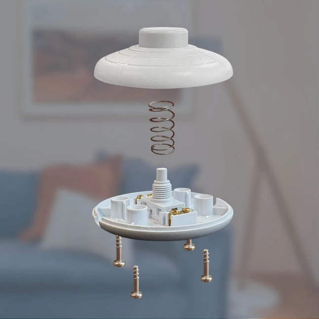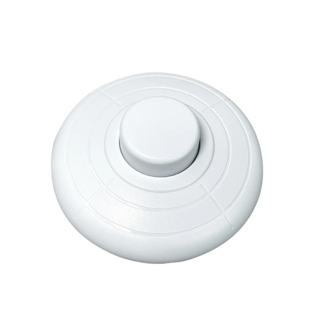 Cet interrupteur poussoir à pied permet d’allumer et d’éteindre un luminaire sans se baisser ni chercher un petit bouton sur la douille. Il se place directement sur le cordon pour une commande au pied rapide, idéale pour un lampadaire, une lampe de chevet ou une création DIY. Son format rond et sa finition blanche restent discrets dans une pièce. Le corps en plastique est léger et adapté à un usage quotidien.