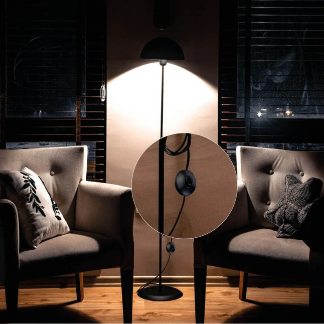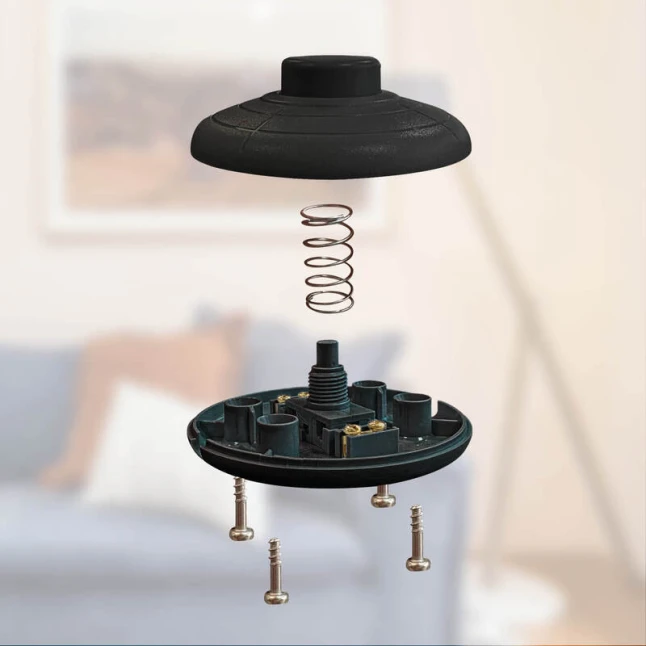 Cet interrupteur à pied noir permet d’allumer et d’éteindre un luminaire sans chercher un bouton sur la douille ou sur la prise. Le format rond se déclenche facilement avec le pied, pratique quand on a les mains occupées ou quand la lampe est derrière un canapé. Son design sobre s’intègre naturellement sur un cordon d’alimentation visible, pour une réparation, une modification ou une création de lampe DIY.