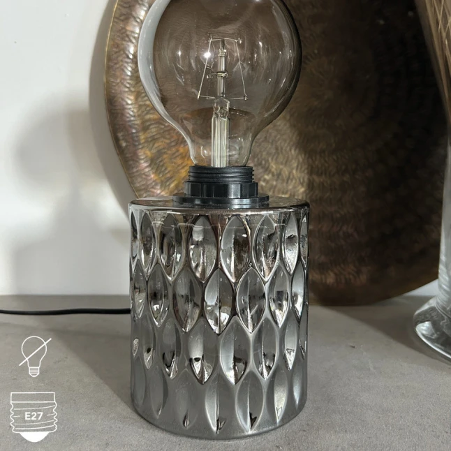 Cette lampe à poser en verre fumé apporte une touche Art Déco sobre et élégante. Le diffuseur teinté crée une ambiance plus chaleureuse, idéale quand on veut éviter une lumière trop directe sur une table de chevet, un bureau ou une console. La finition noire s’accorde facilement avec des meubles clairs ou foncés. Le verre, facile à nettoyer, donne aussi une sensation de qualité et de durabilité au quotidien.