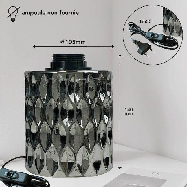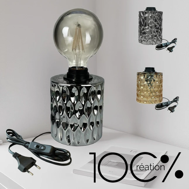 Grâce à sa douille E27, ce luminaire intérieur accepte la plupart des ampoules à vis standards. Vous choisissez la puissance et le rendu selon votre besoin, en LED E27 pour économiser l’énergie ou en ampoule filament pour un effet plus décoratif. Cette compatibilité évite les doutes au moment de remplacer l’ampoule et simplifie la gestion des références. Le verre fumé met particulièrement en valeur une lumière blanc chaud.