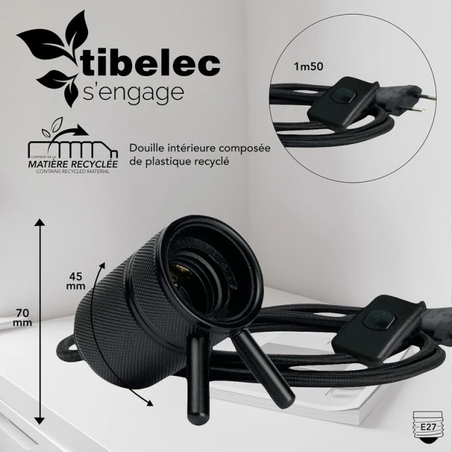 Avec son culot E27 standard, cette douille E27 noire accepte la plupart des ampoules à vis courantes, y compris LED, filament ou ampoule décorative type globe. Vous gardez la main sur le rendu lumineux, de la lumière douce à un éclairage plus franc selon l’ampoule choisie. Un doute classique concerne la compatibilité : ici, le format E27 convient aux ampoules E27 les plus répandues, pratique pour remplacer ou changer de style facilement.