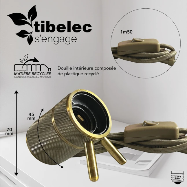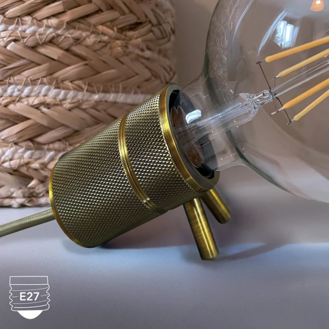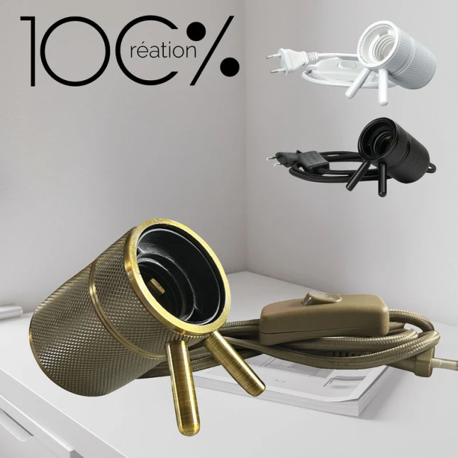 Cette douille en métal doré apporte une touche soignée à vos projets d’éclairage DIY. Son format douille E27 convient aux ampoules courantes et aux modèles décoratifs, pour créer une lampe à poser simple et efficace. Le contraste entre la finition or et le câble en tissu donne un rendu propre, sans ajouter d’éléments inutiles. Idéale quand on veut moderniser un luminaire sans changer tout l’ensemble.