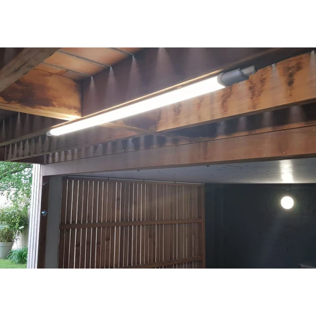 Conçue pour les endroits exposés, cette réglette étanche IP65 est protégée contre la poussière et les jets d’eau. Elle convient bien quand une lampe classique vieillit trop vite en garage, cave, abri de jardin ou atelier. Son diffuseur protège les composants et aide à conserver une lumière régulière dans le temps. Le corps en plastique blanc se nettoie facilement et résiste aux conditions courantes d’un environnement humide ou poussiéreux.