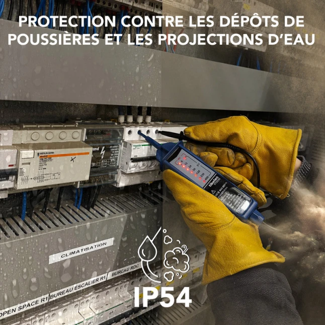 Conçu pour des vérifications fiables, ce testeur est classé en catégorie de mesure CAT III, adaptée aux contrôles sur installations électriques. Il est aussi protégé contre les projections d’eau venant de toutes directions, utile en environnement poussiéreux ou humide. La garantie 3 ans apporte une réassurance concrète sur la durée. Pour les besoins réguliers, l’appareil reste stable en main et sa conception robuste limite l’usure au fil des interventions.