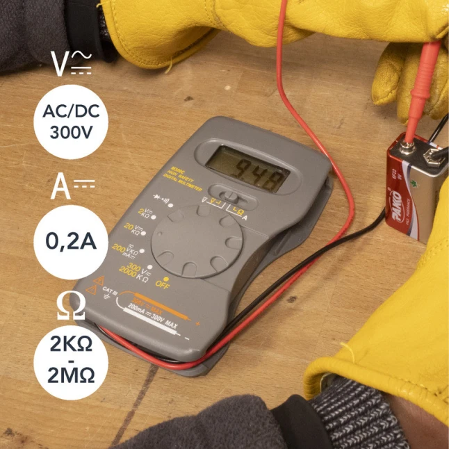 Cet appareil est compact et léger. Il propose 5 fonctions : mesure la tension, l'intensité, la résistance, test de diode et continuité avec buzzer. Pratique avec ses cordons intégrés. Housse de rangement incluse. Pile fournie.