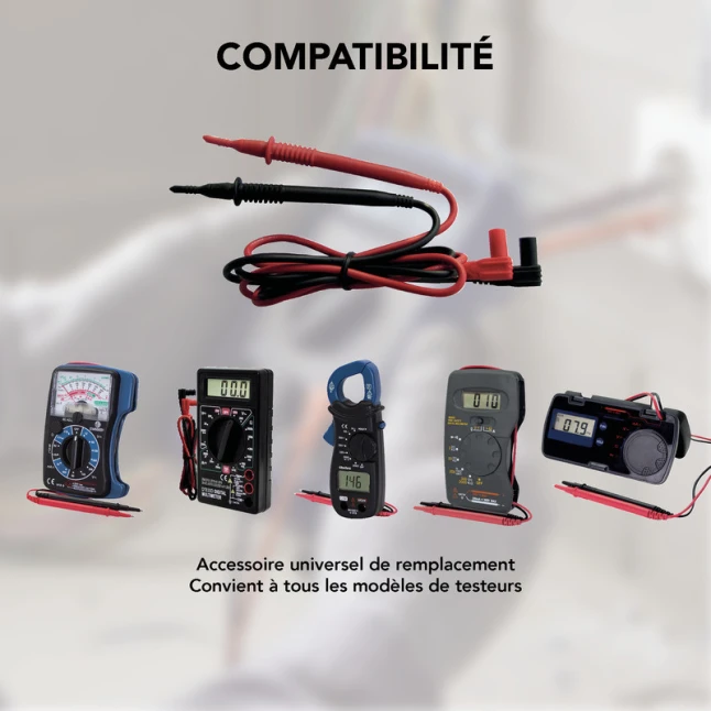 Conçu comme accessoire de testeurs, ce комплект de câbles de test pour multimètre s’utilise en remplacement sur la plupart des appareils grâce aux fiches banane. Vous évitez le doute fréquent sur la compatibilité : si votre testeur accepte des entrées banane standard, ces cordons pointe-touche s’adaptent. Pratique pour disposer d’un jeu de secours, ou pour équiper plusieurs postes de contrôle sans multiplier les références.