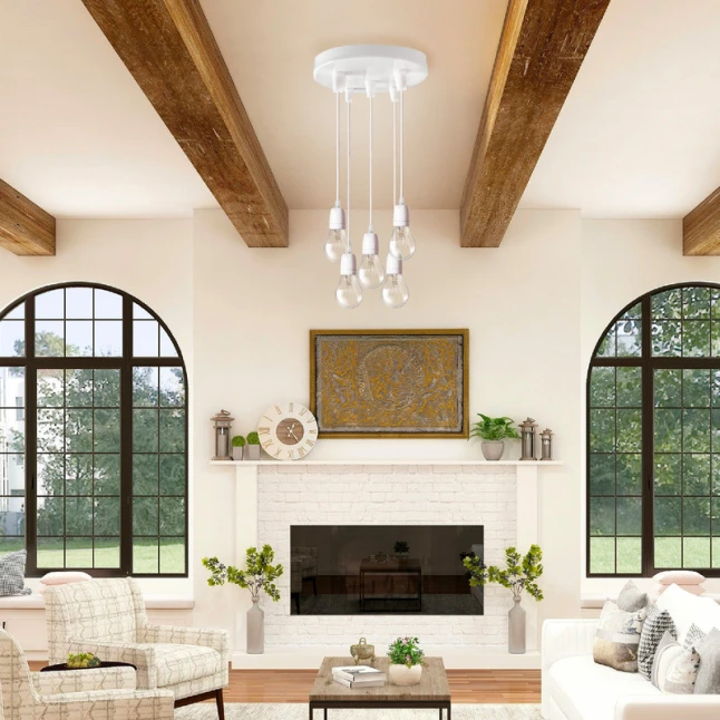 Ce pavillon de plafond rond en métal blanc permet de créer ou de remettre à neuf un luminaire à plusieurs descentes. Il accueille jusqu’à 5 câbles pour composer une suspension multiple tout en gardant un rendu net au plafond. Il répond au besoin fréquent de regrouper plusieurs fils au même endroit, sans boîtier apparent. La forme ronde et la finition blanche s’intègrent discrètement dans la plupart des pièces.
