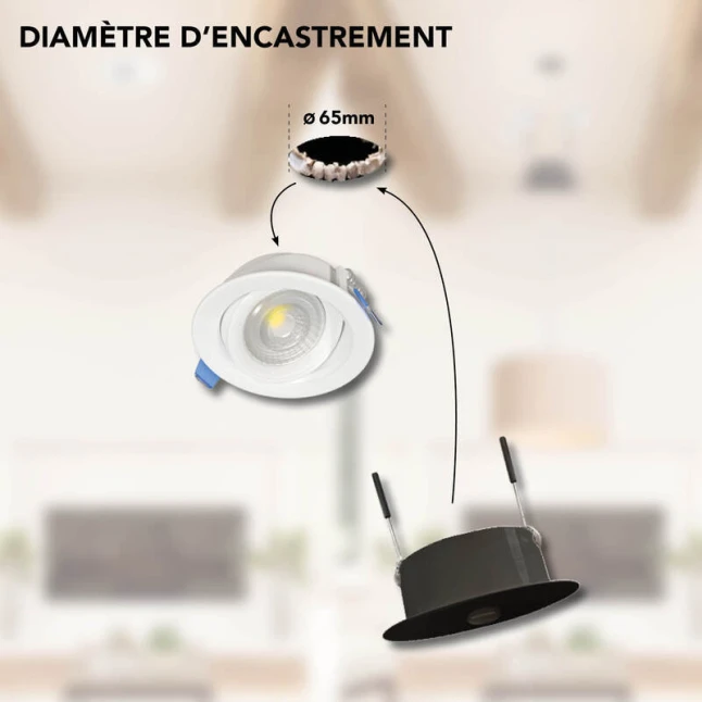 Pour lever les doutes de compatibilité, les cotes sont simples : diamètre extérieur 80 mm et diamètre de perçage 65 mm. Ce pavillon encastrable D.80 s’intègre dans la plupart des percements courants et laisse une marge de recouvrement utile pour rattraper un bord irrégulier. Il est adapté aux fils ronds et aux câbles standards, afin d’obtenir une sortie centrée et un alignement visuel propre.