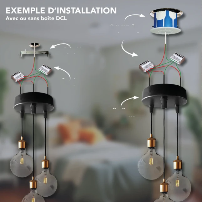 Le serre-câble fourni maintient les câbles en place et limite les tractions, un point rassurant quand on suspend plusieurs points lumineux. Un câble de connexion à la terre est inclus, utile si votre luminaire comporte des parties métalliques à relier. Le kit de fixation est également fourni pour une mise en place fiable. Ce type de boîte de connexion luminaire facilite un travail propre et régulier, apprécié autant pour des petits chantiers que pour des finitions soignées.