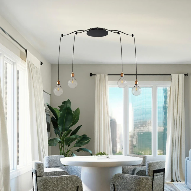 Ce cache-fils de plafond est pensé pour simplifier les projets où l’on hésite entre plusieurs sorties de câbles ou un montage plus discret. Le passage latéral facilite l’orientation des descentes sans forcer sur les gaines. Avec sa capacité jusqu’à 12 câbles, il convient aux compositions à plusieurs suspensions tout en gardant un encombrement maîtrisé grâce au format rond D.180 mm. La mise à la terre fournie sécurise l’ensemble.