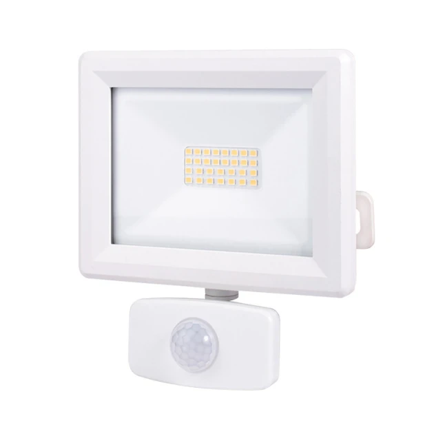 Ce projecteur LED extérieur 20W délivre 1880 lumens pour éclairer clairement une entrée, une allée de garage, une terrasse ou un jardin. Sa lumière 4000K blanc neutre offre un rendu naturel, utile pour se repérer et voir les détails sans teinte trop froide. La technologie LED réduit la consommation tout en gardant un flux lumineux stable dans le temps. Son format compact et sa finition blanche restent discrets sur une façade.