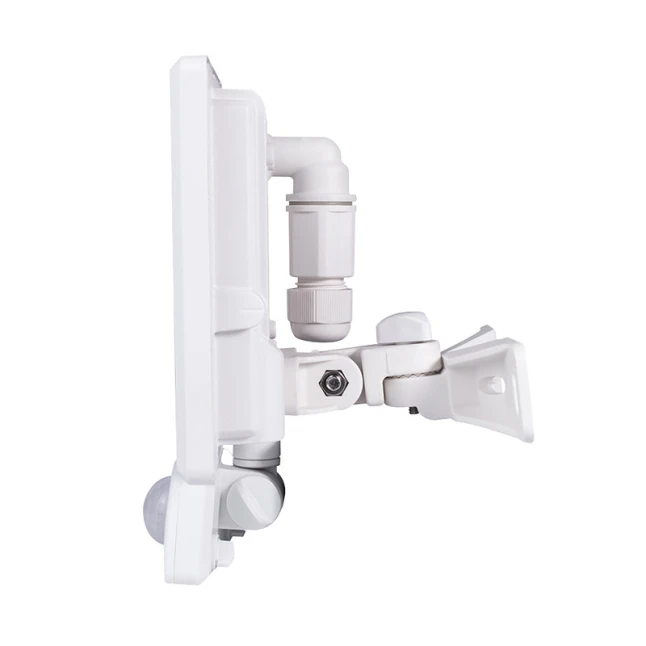 Conçu pour durer dehors, ce projecteur LED IP65 résiste à la poussière et aux projections d’eau. Son corps en métal et sa finition blanche s’intègrent facilement sur une façade ou un mur. Le support orientable 3D permet d’ajuster précisément l’angle d’éclairage, pratique si l’emplacement impose une contrainte. Le connecteur rapide intégré fait gagner du temps au raccordement et facilite les remplacements, sans complication inutile.