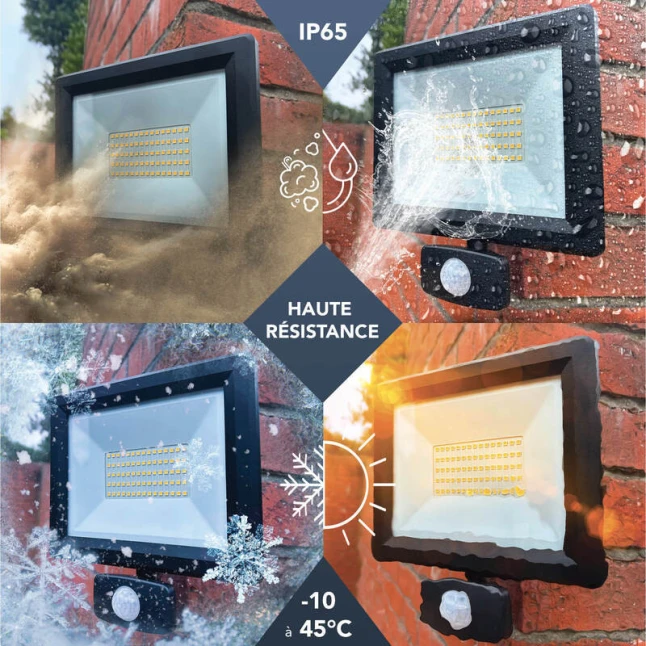 Le détecteur de mouvement intégré évite le principal souci des éclairages extérieurs : devoir penser à allumer et éteindre. Il s’active automatiquement lors d’un passage et aide à sécuriser les abords. La détection 180° et une portée d’environ 10 m couvrent une large zone. Les 3 réglages permettent d’adapter le fonctionnement à vos habitudes, et le détecteur orientable affine la zone surveillée.