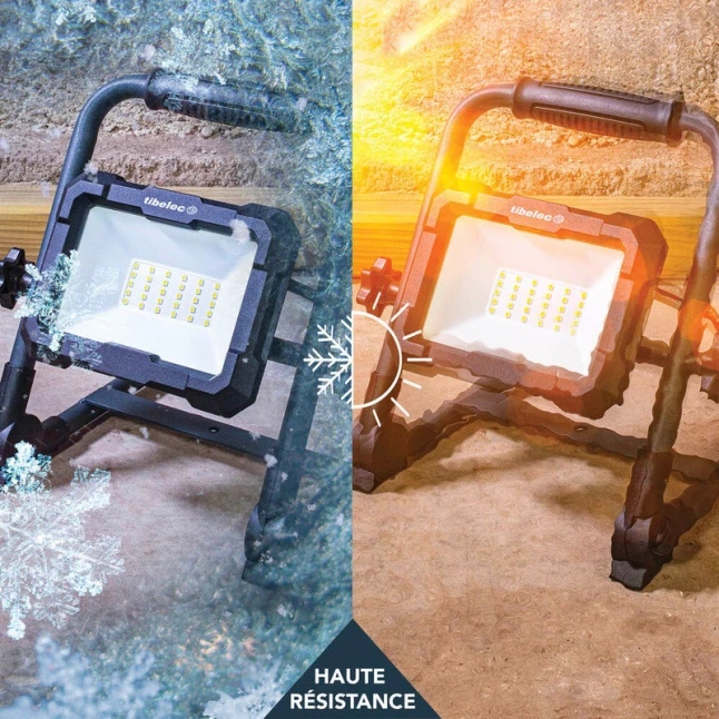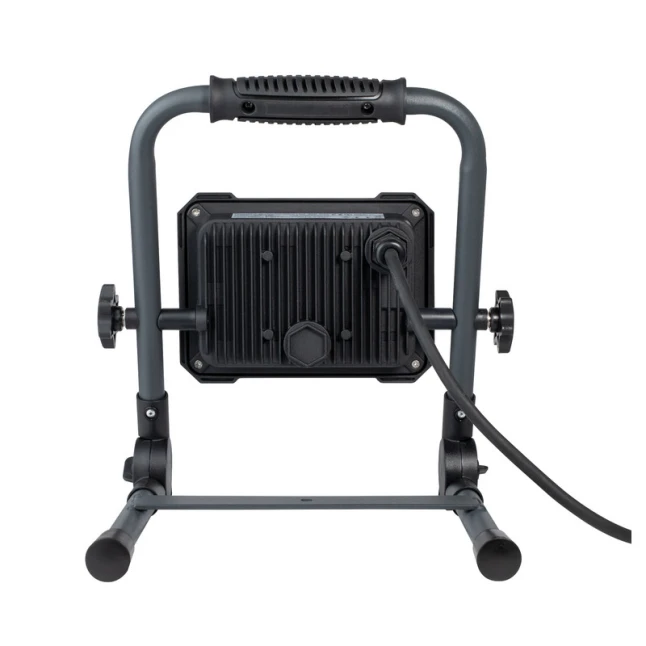 Le principal problème d’un éclairage de chantier est souvent le manque de place et la difficulté à orienter la lumière. Ici, le pied pliable permet un rangement facile et un transport rapide, tout en gardant une base stable. Vous pouvez diriger le faisceau là où vous en avez besoin, sans multiplier les points lumineux. Le format sur pied convient autant pour éclairage ponctuel qu’en poste de travail, avec une alimentation filaire fiable.