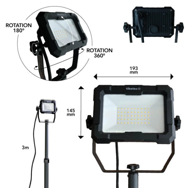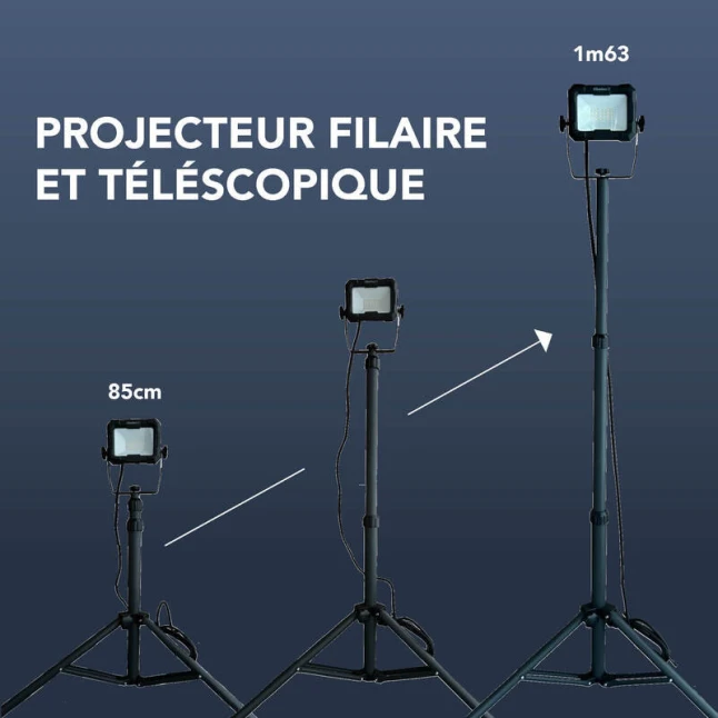 Le pied télescopique permet d’ajuster la hauteur afin d’éclairer au plus près de la zone utile et de réduire les zones d’ombre. Vous profitez d’un éclairage stable et mains libres, pratique pour la rénovation, la peinture, la mécanique ou l’aménagement. Le fonctionnement filaire évite les interruptions liées à une batterie et assure une lumière constante tant qu’une prise est disponible. Un atout apprécié quand il faut être efficace et régulier.