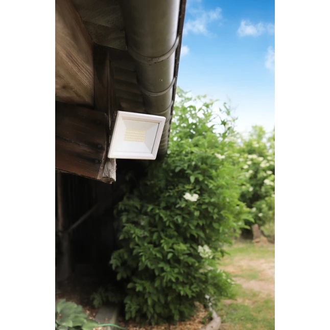 Ce projecteur LED 50W délivre 5500 lumens pour éclairer clairement une entrée, une allée, une façade ou une zone de stationnement. La teinte 4000K blanc neutre offre une lumière naturelle, utile pour voir sans éblouir. C’est une solution simple quand un ancien projecteur manque de puissance ou éclaire mal. Le format compact et la finition blanche s’intègrent facilement sur un mur ou un support existant.