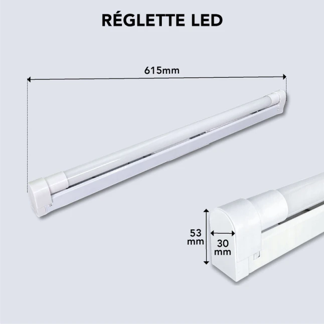 Cette réglette LED blanche délivre 945 lumens pour une consommation de 9 W. La lumière blanc neutre 4000 K donne un rendu naturel, pratique pour voir les détails sans éblouir. Elle convient bien pour un garage, une cave, un abri de jardin ou une zone de passage. Le format réglette aide à éclairer une zone de travail ou un établi avec une lumière régulière et stable.