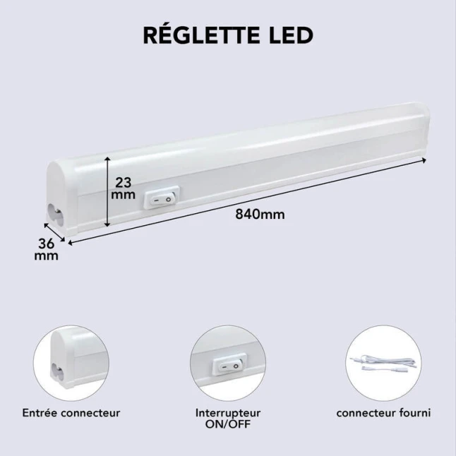 Réglette LED AVENIO 7W 680 lm 4000K interrupteur on/off connecteur intégré garantie 5 ans blanc (sous meuble, vitrine)