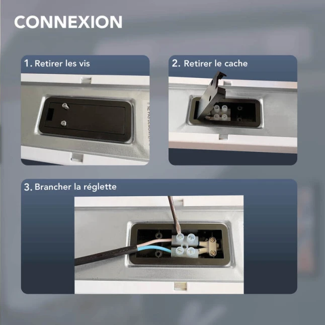 L’interrupteur infrarouge intégré répond à un problème courant : allumer quand on a les mains prises ou humides. Un simple passage de la main devant la cellule suffit pour allumer ou éteindre, sans toucher. Le bornier de connexion intégré simplifie le raccordement et limite les faux contacts. Cette réglette LED 230V est pensée pour une alimentation directe sur secteur, sans transformateur externe.