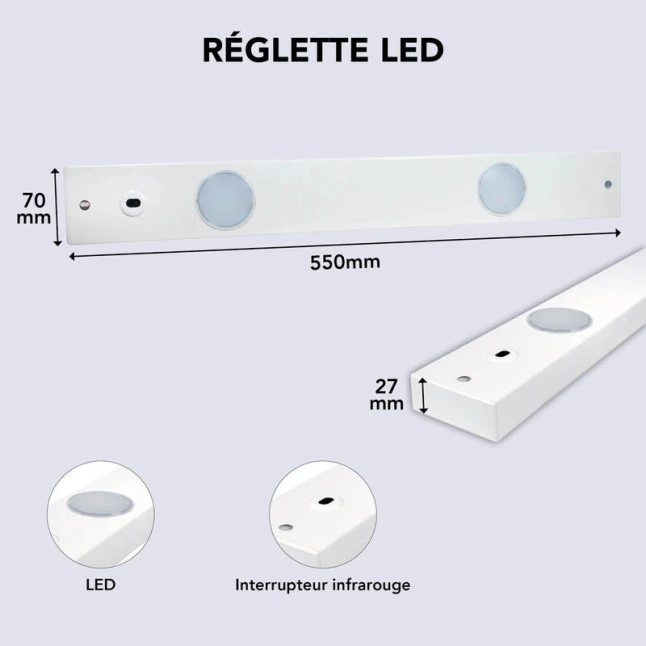 Réglette LED CAMPONA 10W 935 lm 4000K blanc neutre interrupteur infrarouge bornier intégré IP20 (sous meuble)