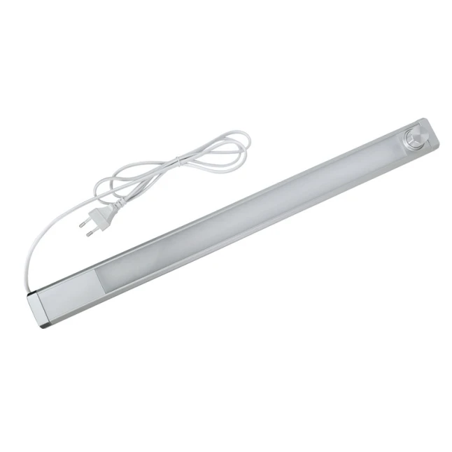 Cette réglette LED en métal argenté apporte une lumière utile là où une lampe classique prend trop de place. Elle est idéale sous un meuble de cuisine, dans une vitrine, sous une étagère ou au-dessus d’un plan de travail. Avec 8W de consommation et 560 lm, le bandeau LED éclaire clairement sans surcharger la pièce. Le cordon d’alimentation intégré simplifie le raccordement à une prise, sans accessoire à ajouter.