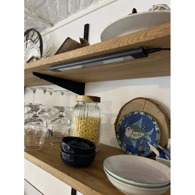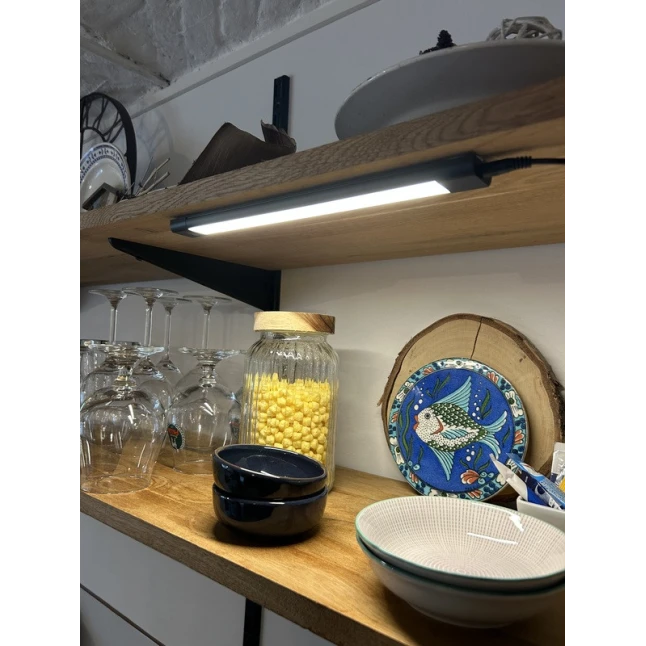 Cette réglette LED noire apporte un éclairage net là où il manque souvent, par exemple sous un meuble de cuisine, une étagère ou dans une vitrine. Avec une puissance de 5 W max et un flux d’environ 420 à 460 lm, elle éclaire une zone de travail sans éblouir. Son format bandeau se fait discret et s’intègre facilement dans un décor moderne ou sombre, tout en restant simple à nettoyer au quotidien.