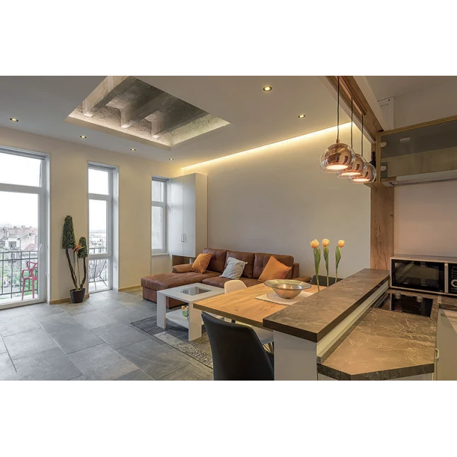 Ce ruban LED intérieur diffuse un blanc chaud 2700K, idéal pour créer une ambiance chaleureuse sans éblouir. Avec 530 lumens, il apporte un éclairage d’appoint efficace pour une étagère, une vitrine, un meuble de cuisine, une tête de lit ou une corniche. Sa puissance de 7W aide à limiter la consommation tout en gardant une lumière homogène et agréable au quotidien.