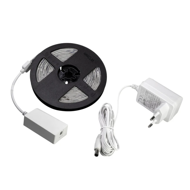 Ce ruban LED de 5 m apporte une lumière blanc chaud 2700K, agréable pour créer une ambiance douce tout en restant efficace. Sa puissance de 16W délivre environ 1200 lumens, pratique pour éclairer un plan de travail, un couloir ou une zone un peu sombre sans multiplier les points lumineux. Le ruban est incolore une fois éteint, pour rester discret et s’intégrer facilement à la déco.