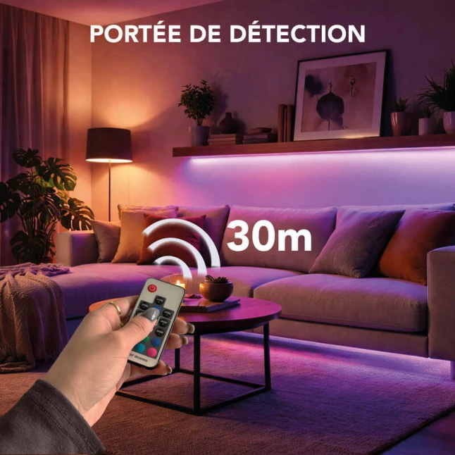 Ce ruban LED RGB apporte une lumière d’ambiance modulable pour mettre en valeur une étagère, un meuble, une tête de lit ou l’arrière d’un écran. Avec 600 lumens pour 12W, il éclaire sans éblouir et convient aussi bien à une déco discrète qu’à un effet plus coloré. Le principal frein, souvent, est la peur d’un câblage compliqué : ici, l’éclairage se fait simplement via une alimentation USB.