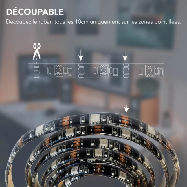 Long de 2 mètres, ce ruban LED adhésif se pose proprement sur de nombreuses surfaces lisses, pour un rendu net et discret. Il est découpable tous les 10 cm afin d’adapter la longueur au projet et limiter les chutes. Le format connectable facilite l’intégration dans une mise en scène lumineuse compacte. Pour des usages répétés, l’adhésif aide à gagner du temps et à obtenir une finition régulière, utile aussi lors de préparations rapides d’espaces.