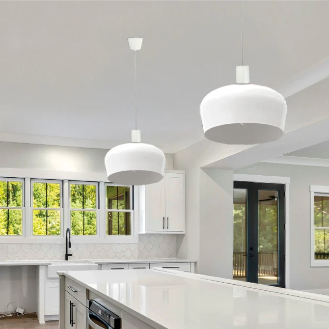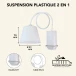 Cette monture suspension blanche en plastique permet de créer facilement un point lumineux au plafond ou de remplacer une suspension usée. Son format 2 en 1 s’adapte à votre projet : utilisation sans abat-jour avec une ampoule décorative type globe, ou avec un abat-jour/verrerie. Elle répond bien au besoin fréquent de moderniser un luminaire sans changer toute l’installation, tout en gardant un rendu propre et discret.