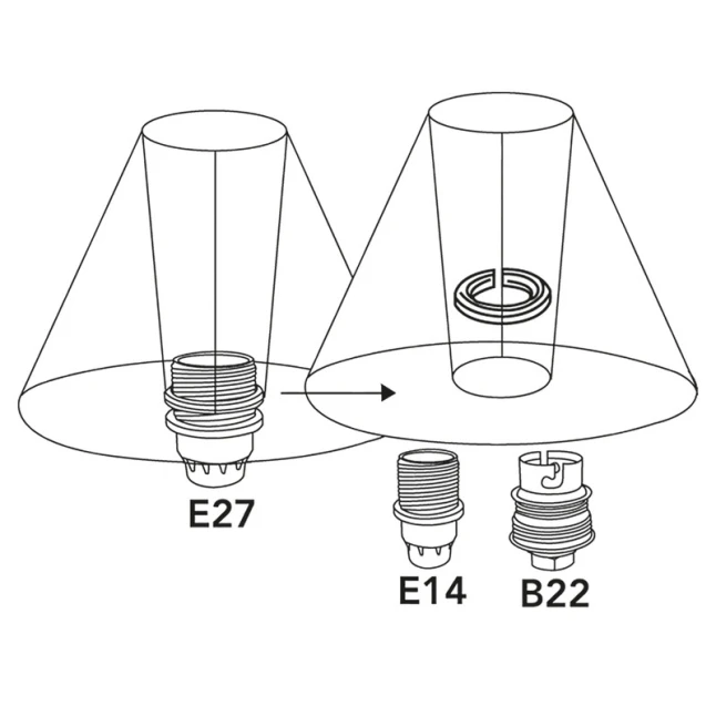 Ces bagues de réduction d’abat-jour résolvent un problème fréquent : un abat-jour avec une ouverture prévue pour une douille E27 qui ne tient pas sur un culot plus petit. En insérant l’anneau de réduction, vous adaptez simplement un abat-jour E27 sur une douille E14 ou sur une douille B22. Idéal pour une modification de luminaire, une réparation propre ou une création DIY, sans changer l’abat-jour.
