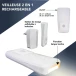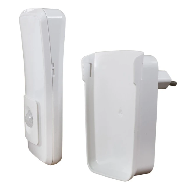 La veilleuse rechargeable se pose sur sa station de chargement enfichable et la batterie se recharge automatiquement. Un point qui répond au doute le plus courant : pas besoin de piles à remplacer ni de câble à brancher à chaque utilisation. Retirez-la de sa base et elle devient une petite lampe nomade en mode torche, utile pour se déplacer, vérifier une pièce ou éclairer un placard. Le format à brancher libère une prise sans encombrement inutile.