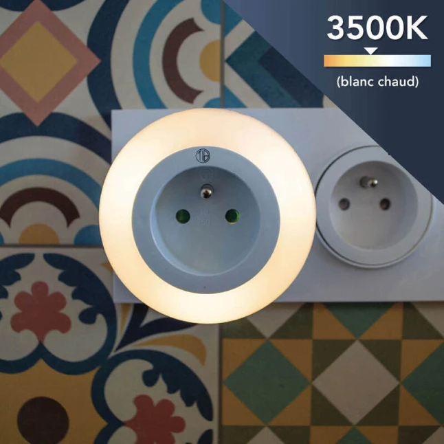 Cette veilleuse LED crépusculaire s’allume seule quand la lumière baisse et s’éteint quand le jour revient. Vous évitez de chercher un interrupteur la nuit, dans un couloir, une chambre ou près d’un escalier. Son flux doux de 12 lumens limite l’éblouissement et rassure les déplacements. La teinte 3500K blanc chaud apporte une lumière agréable, discrète, qui ne perturbe pas le repos.