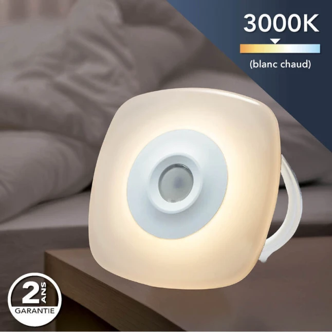 Cette veilleuse LED USB apporte un éclairage d’appoint confortable pour une chambre, une entrée ou un couloir. Sa teinte 3000K blanc chaud limite l’éblouissement et aide à se déplacer la nuit sans réveiller. Avec sa faible puissance 0,5W et ses 18 lumens, elle est pensée pour le balisage plutôt que pour éclairer toute une pièce. Deux niveaux de luminosité permettent d’adapter l’intensité selon le besoin.