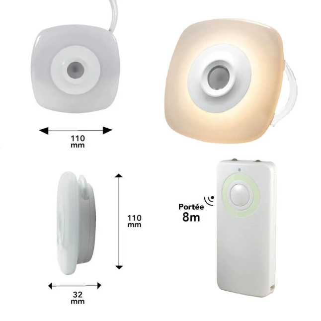 La lampe de nuit rechargeable se recharge via USB et est livrée avec son câble, pratique au quotidien. Elle peut être alimentée depuis un chargeur USB, un ordinateur ou une batterie externe, ce qui rassure quand on manque de prise à proximité. L’allumage et l’extinction se font au choix avec la télécommande ou par bouton poussoir central, utile pour garder le contrôle à distance ou lors de passages répétés.